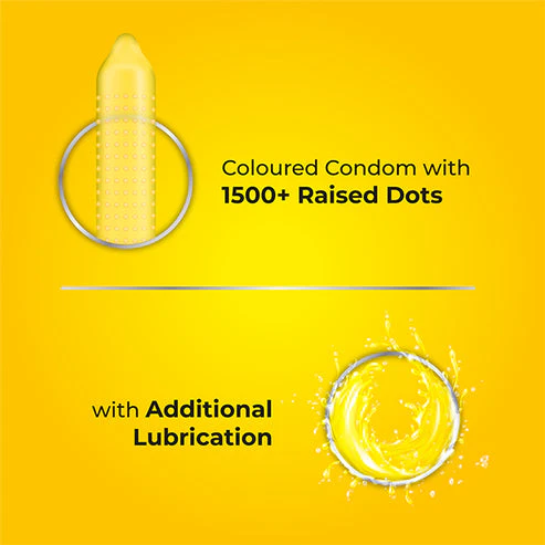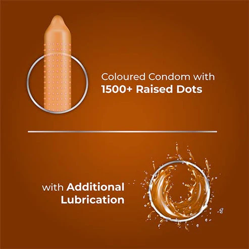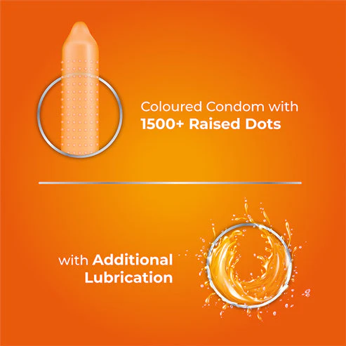 Score as you play the game of love with Skore Condoms. Your lovemaking becomes more special with its assorted flavours of Banana, Orange, Strawberry and Chocolate. To add to your pleasure you have dotted texture with over 1500+ raised dots, cool colour and added lubrication.